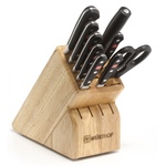 Classic 10 Pc. Cutlery Set w/Wood Block Forged from one piece of specially tempered high carbon steel to ensure outstanding strengthExtraordinary sharpness which is easy to maintainSpecial alloyed steelStainlessSeamless hygienic fit of the handleTriple-riveted handle shells full tang handleBlack handles made of synthetic materialIncludes: 3.5" Paring Knife 4.5" S-11 Utility Knife 6" Utility Knife 5" Santoku - Hollow Edge 8" Carving Knife - Hollow Edge 8" Bread Kni ... |