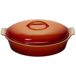 Heritage 4 Qt. Covered Stoneware Oval Casserole Flame Le Creuset stoneware casseroles offer superior highly functional performance both in the oven and at the table. These durable stoneware dishes include tight-fitting lids and easy-to-grip grooved side handles and are designed for a multitude of kitchen tasks whether baking desserts oven-roasting meats broiling fish or simply marinating before cooking.Secure stoneware lid with traditional loop handleHigh-quality exterior enamel protects against metal marks and other damage ... |