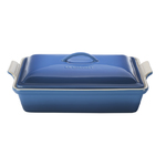 Heritage 4 Qt. Covered Rectangular Casserole Marseille Stoneware maintains even temperatures and prevents scorchingPerfect piece that moves from oven to tableExterior enamel resists scratches and stainsInterior enamel is nearly nonstick and releases food easilyStoneware blocks moisture absorption and prevents cracking crazing and ripplingSafe to cut on with knivesLid locks in moisture and heat4-Quart capacityDimensions: 11.5âl x 2.75âH x 7.75âWSafe for fre ... |