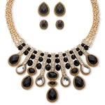 Nothing is more versatile, or alluring, than black and white. The elegant pear drop halos in this crystal three-piece set are highlighted by ovals and small shimmering rounds for a look that will light up the room. This set comes with an extra pair of earrings so you can mix up your look a bit. Features an adjustable " - " length necklace and two pairs of earrings in oval and pear-cut styles. Gold tone.Piece 1: NecklaceMetal: GoldtoneFinish: BrightLen ... |