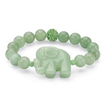PalmBeach Jewelry Green Jade Elephant and Crystal Beaded Stretch Bracelet 8”