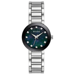 Ladies Silver-Tone Diamond Watch Black Mother-of-P...