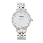 Monterey Silver-Tone Stainless Steel Watch with Crystal Accents Shiny stainless steel braceletMother-of-Pearl dial with crystal hour markersSilver-tone hands and spade at 12 hour markSilver-tone stainless steel bezel lined with crystalsQuartz movementKate Spade logoCase diameter: 38mmWater resistant to 30 M2-Year manufacturer limited warranty ... |
