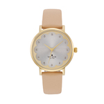 5 O Clock Metro Vachetta Leather Strap Watch Cream Dial Happy hour takes on new meaning with our spirited Metro watch. Crafted of smooth leather with a brimming cocktail perfectly posted at 5 oâclock. Itâs one of the original styles from the Kate Spade watch collection inspired by its favorite city - New York New York.Vachetta leather strap12K Gold plated metal caseCream enamel dial with âsomewhereâ cursive inscriptionCocktail glass icon at 5-hour markPink spade at 12-hour markGold-t ... |