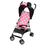 Pink Minnie DLX Umbrella Stroller w/ 3D Canopy & Basket Easier and more intuitive stroller that is great for travelMinnie Mouse ear canopy provides protection from the sun3-Point harness keeps your child in placeConvenient lower storage basketLightweight design with an easy and compact foldFootrest for added comfortDouble foot breakHolds children up 40lbs ... |