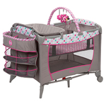 Minnie Dot Sweet Wonder Play Yard Easy to reach newborn - less bending for parentsFeatures open-view and breathable meshEasy to clean changer is great for keeping at home or taking on the goDeluxe side organizer keeps the essentials within reachRoomy enough to keep the baby safe during rest or playIntuitive set up and take down with secure indicatorsSturdy wheels lets you move easily from room to roomIncludes fitted bag with handleWipe clean changer ... |