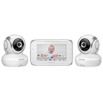 4.3" Video Baby Monitor with 2 Cameras Keep an eye on your child and their roomFeatures a digital video baby monitor with two cameras4.3â Color screen features split-screen and auto-switch screen viewing options2.4GHz FHSS technology for a reliable connection range up to 1000ftRemotely pan tilt and zoom as needed30Degree viewing rangeInfrared night vision to see in low lightsRoom temperature displayTwo-way communication5 Built-in lullabies to s ... |