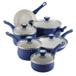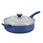 New Traditions 14 Piece Speckled Cookware Set Blue New Traditions speckled aluminum nonstick cookware setHigh-performance aluminum constructionSpeckled porcelain enamel exteriorWhite nonstick interior releases food easily and easy cleanupComfortable rubberized handlesShatter-resistant glass lids keep in heat and moistureOven safe up to 350F1 qt Covered saucepan2 qt Covered saucepan3 qt Covered saucepan5 qt Covered Dutch oven8.5" Open skille ... |