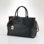 Newbury Leather Double Zip Satchel Black Rich leather materialSignature monogram âLRLâ on the frontTwo top handles with removable signature monogram âLRLâ luggage tagTop zip closure provides a wide openingInterior features two separate zippered compartmentsMagnetic snapped closureDimensions: 16â x 16.75â x 11â ... |