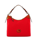 Dooney's Nylon Collection items are lightweight and extremely durable. A more substantial weave provides the extra reinforcement that allows this collection to better maintain profile. High impact hues, shiny gold tone hardware and russet leather trim make this collection the perfect carryall for everyday. One inside zip pocket. Four inside pockets. Center zip divider pocket. Cell phone pocket. Zipper closure. Adjustable, detachable strap. Strap drop length: 9 in. L 12.25 in. W 6.25 in. H 9.75 in.