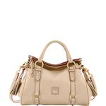 Dooney's Florentine Collection combines a cool, laid back sense of style with elements of classic sophistication, for an effortless look that is timeless and very chic. Red cotton lining edged in green suede. Double handles with 4.5 in. drop. Fold-over zipper closure. Lined with feet. One inside zip pocket. Two inside pockets. Cell phone pocket. Detachable strap drop: 19 in. L 13 in. W 5.75 in. H 8 in.