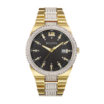 Mens Crystal Gold-Tone Watch Dual Level Black Dial