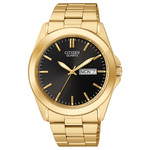 Mens Quartz Gold-Tone Stainless Steel Watch Black Dial